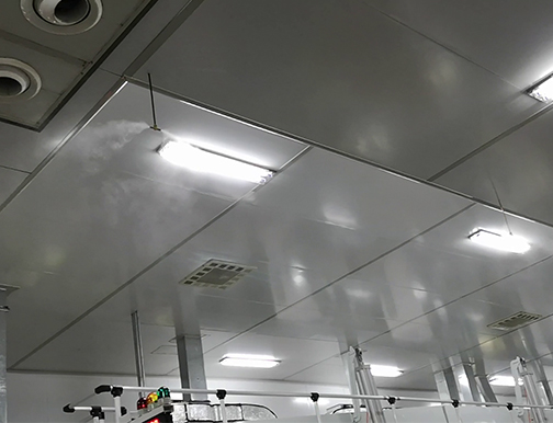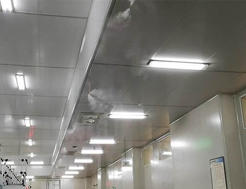 我司通過現(xiàn)場考察、與對方技術(shù)人員進行深度溝通探討,最終決定采用1套高壓微霧主機,采用2路濕度控制的主機(KSA-S2-W1-3000),分2塊區(qū)域控制,共設(shè)計安裝370個噴嘴。我司人員進行現(xiàn)場安裝和指導(dǎo),該設(shè)備現(xiàn)已投入生產(chǎn)使用,達到預(yù)期效果。