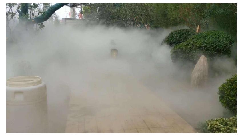 1、降溫、除塵:人造霧形成的水粒子顆粒非常的小,在空氣中很容易蒸發(fā),帶走空氣中的熱量,降低溫度;同時(shí),人造霧顆粒還可以和懸浮在空氣中的塵埃顆粒相結(jié)合,增加比重,起到凈化空氣,除塵的作用。