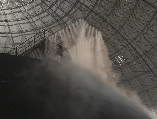 針對此次輔料堆棚噴霧降塵項目,我公司前期已經(jīng)多次到客戶現(xiàn)場勘查了解現(xiàn)場實際工況:熟悉并確定現(xiàn)輔料堆棚的位置、方位、水源、電源接取的位置和注意事項;熟悉輔料堆棚的長、寬、高尺寸以及堆棚結(jié)構(gòu);了解輔料堆棚內(nèi)主要的揚塵點:包扣卸料口、上料口。及作業(yè)車輛作業(yè)的頻率;熟悉物料對水霧顆粒的要求;確整體堆棚抑塵的預(yù)期效果等等。并且考慮到這些因素我公司選擇均化堆場整體堆棚設(shè)計噴嘴902個,采用304不銹鋼離心式單流體霧化噴嘴,噴嘴孔徑采0.4mm,噴嘴內(nèi)置過濾網(wǎng)(噴嘴型號:KM-4010-L)。在工作壓力為60Bar的壓力條件下,霧化顆粒90%小于40μm。整體采用2套噴霧抑塵主機設(shè)備:噴霧抑塵主機的正常工作壓力需要達到50-70Bar;其水泵要滿足揚程的需要;主機要采用環(huán)境監(jiān)測系統(tǒng)實現(xiàn)同步通訊,來實現(xiàn)遠程控制,同時必須滿足可選擇采用手動模式和本地的自動;所有系統(tǒng)要有防凍功能,主機需要配套溫度自動控制功能,采用伴熱帶、加熱管來防凍;主機主管路輸出不少于4條。